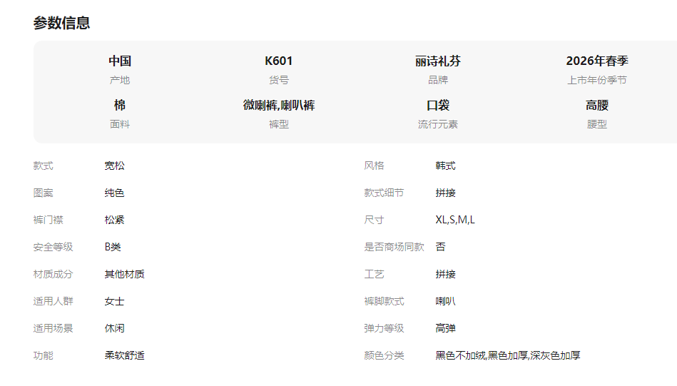 喇叭裤 1份 ¥168