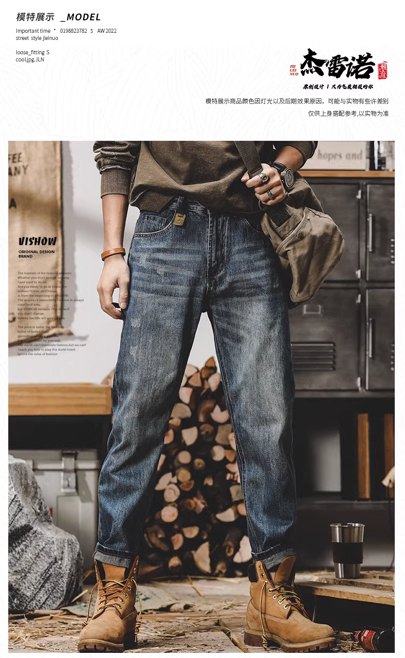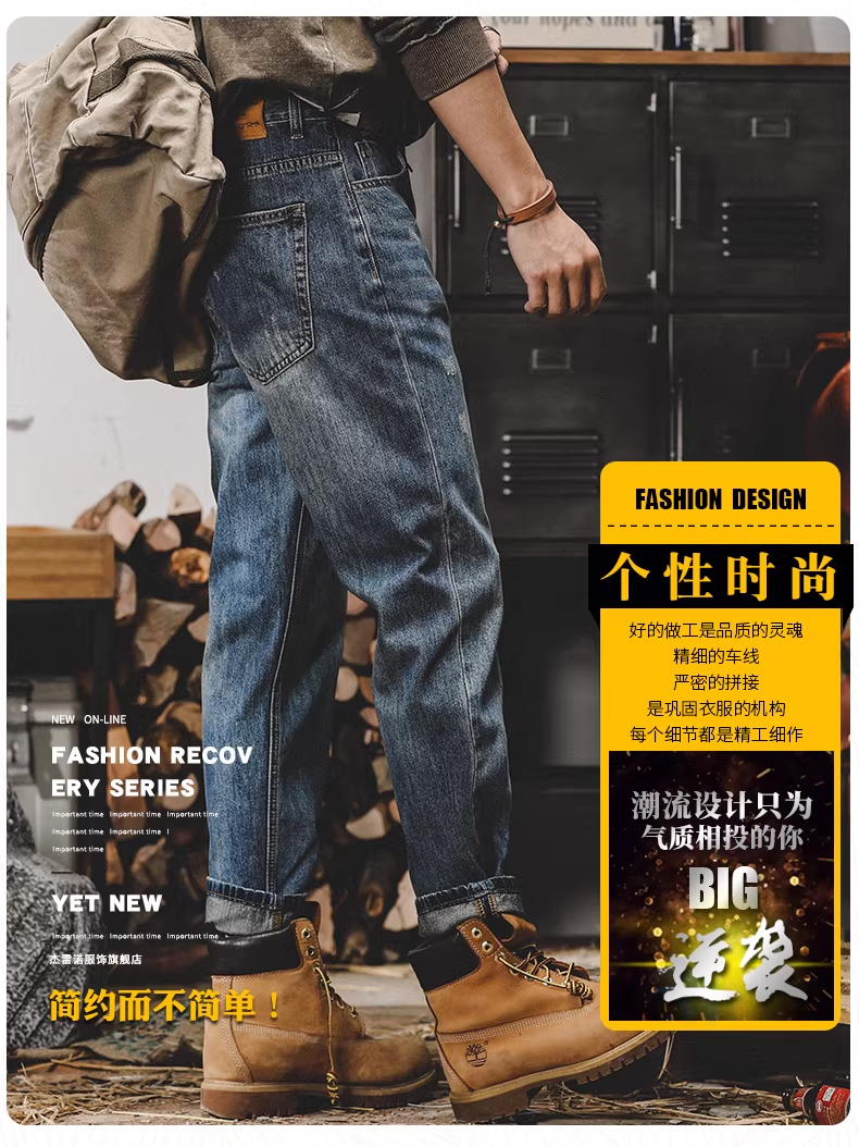 美式复古直筒牛仔裤男